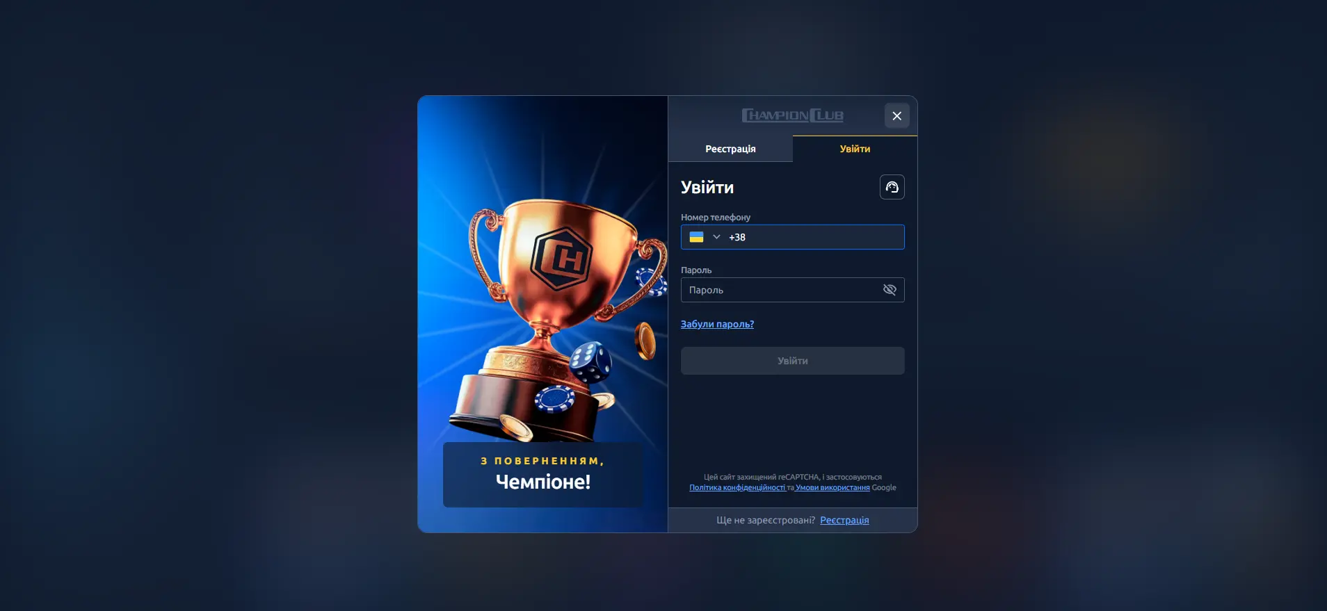 Використання вкладки «Login» гарантує безпечний вхід, перевірку бонусів та доступ до повного функціоналу Champion Club.